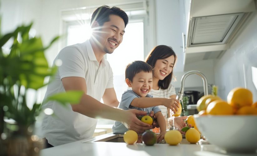 - Mencuci buah dan sayur hingga benar-benar bersih dan mengupas kulitnya.
